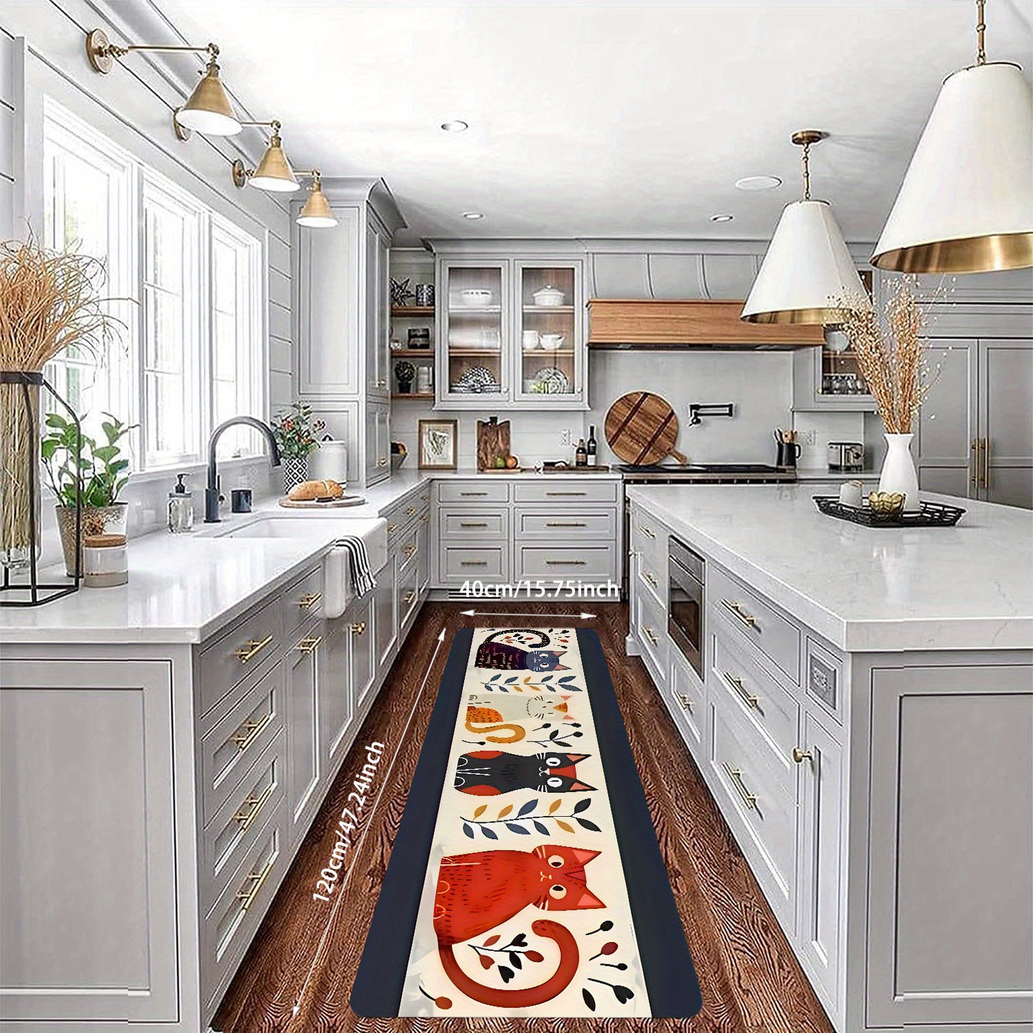 부드러운 플란넬 소재로 제작된 귀엽고 재미있는 모던 미니멀리스트 주방 매트 1개 – 회색 체크 디자인에 장난기 넘치는 요리 그래픽이 특징이며 주방 및 거실에 적합, 주방 카펫